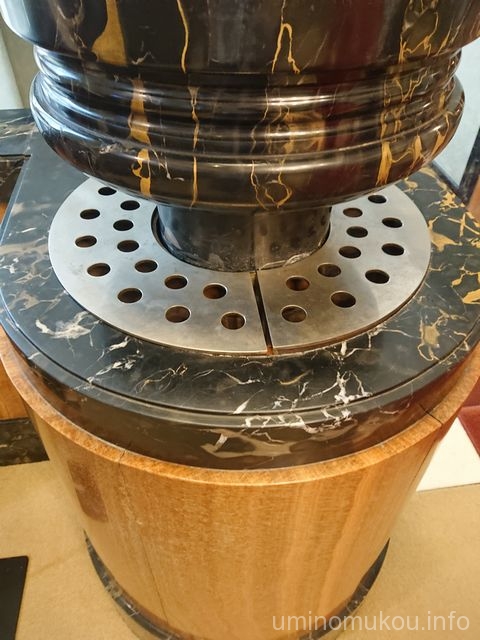 ふと横を見ると、荷物を置いたり、花瓶を置きたくなる小物入れのようなものがあったけど、ちょっとまて。これは大理石「コルトロ」ではないか!